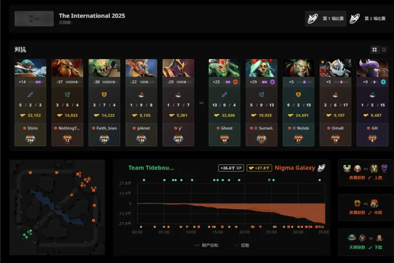 虎扑09月12日讯 在刚刚结束的2025DOTA2国际邀请赛(TI14)败者组首轮比赛中,CN赛区战队Tidebound被Nigma Galaxy以2-0横扫,最终止步本次赛事八强未能进入前六。而本次赛事剩下的CN赛区战队也仅有XG一支。XG将在随后的胜者组半决赛对阵PVISION